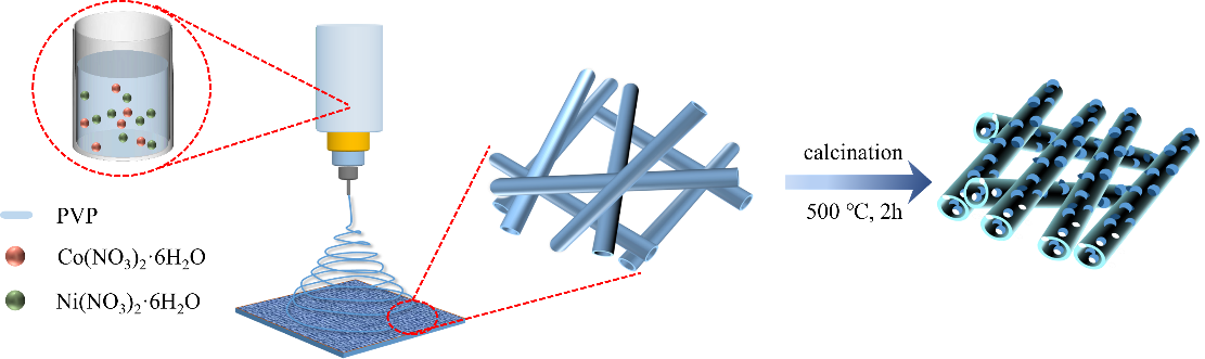 随着可再生能源和电动汽车的快速发展,开发具有高能量密度、高功率密度和长循环寿命的超级电容器成为研究热点。针对传统过渡金属氧化物电极材料导电性差、结构稳定性不足等问题,本研究提出一种简便的静电纺丝结合碳化处理方法,通过调控前驱体中钴/镍摩尔比,实现了Co3O4与NiCo2O4异质结在碳纳米纤维中的原位自组装。该电极材料具有制备工艺简单、结构可控、性能优越等特点,在柔性电子设备、新能源汽车等领域具有广阔的应用前景。